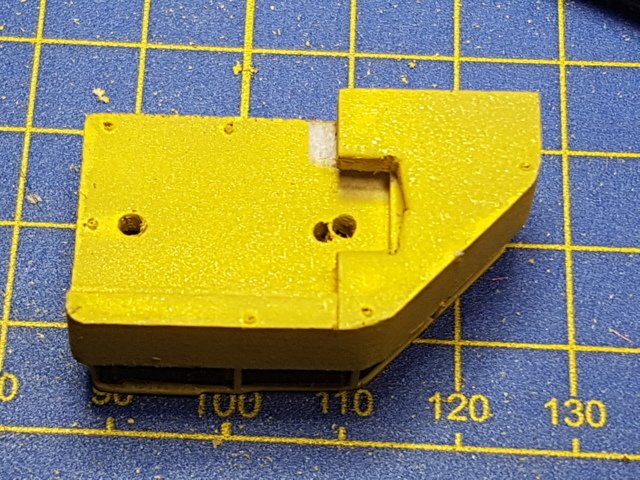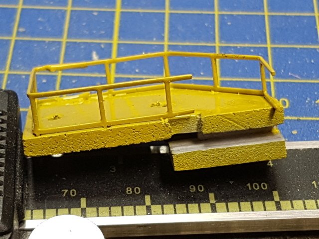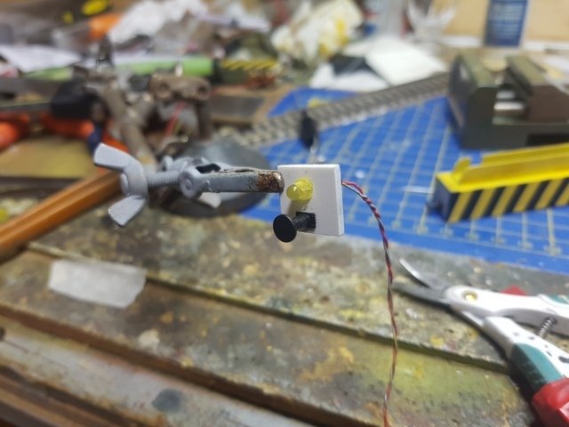 La cabina di comando è stata "vitalizzata" con seggiolino ed operatore presi ed adattati da un automezzo e la luce è il solito led su un pezzetto di traccia stagnata e poi cablata.