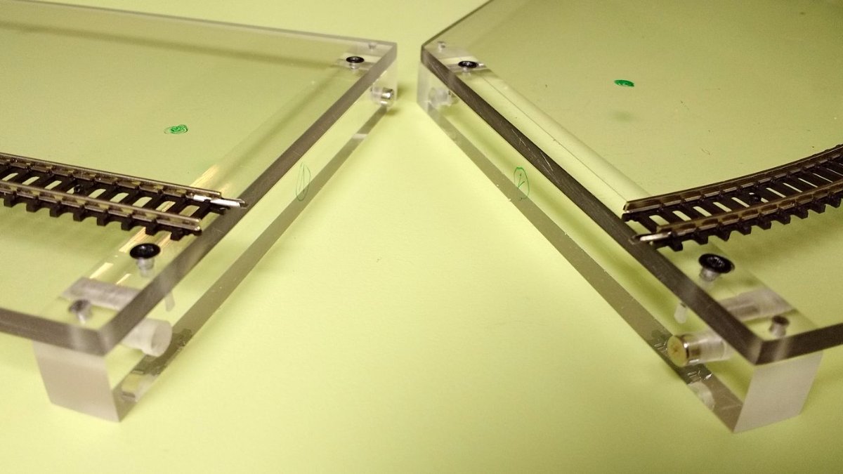 Il polo nord sporge di 2 mm, mentre il sud è incassato di 2,5 mm. In questa maniera, prima che i moduli si blocchino, si possono infilare le rotaie nelle giunzioni.