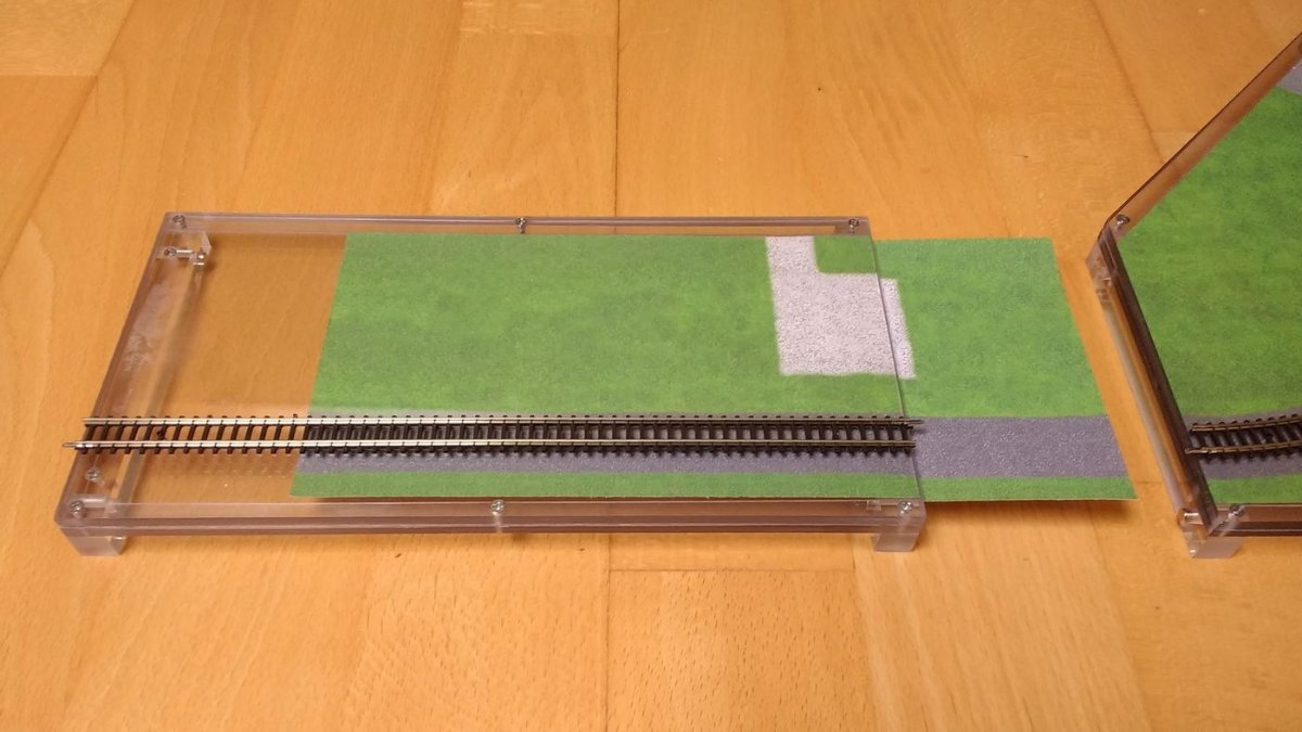 Questi sotto sono i prototipi di due moduli, in stile Zen, ma si possono fare anche di legno, con la massicciata e il paesaggio normale: