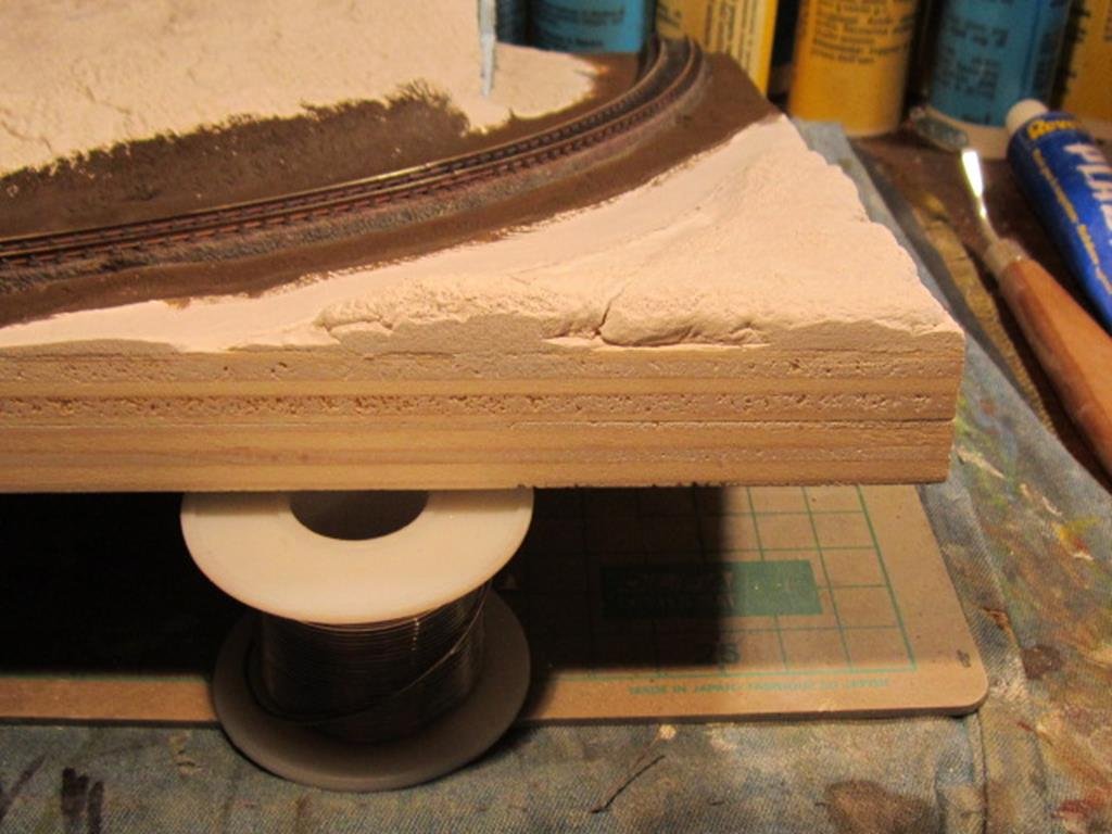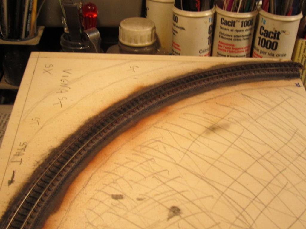 Ma si può fare grazie alle massicciate in plastica dei binari che non si sgretolano come il ballast a contatto della parte adesiva del nastro. Con il ballast occorre che la mascheratura sia oltre il ballast in modo che il nastro adesivo in carta non vi si incolla sopra , un po più faticoso ma non impossibile