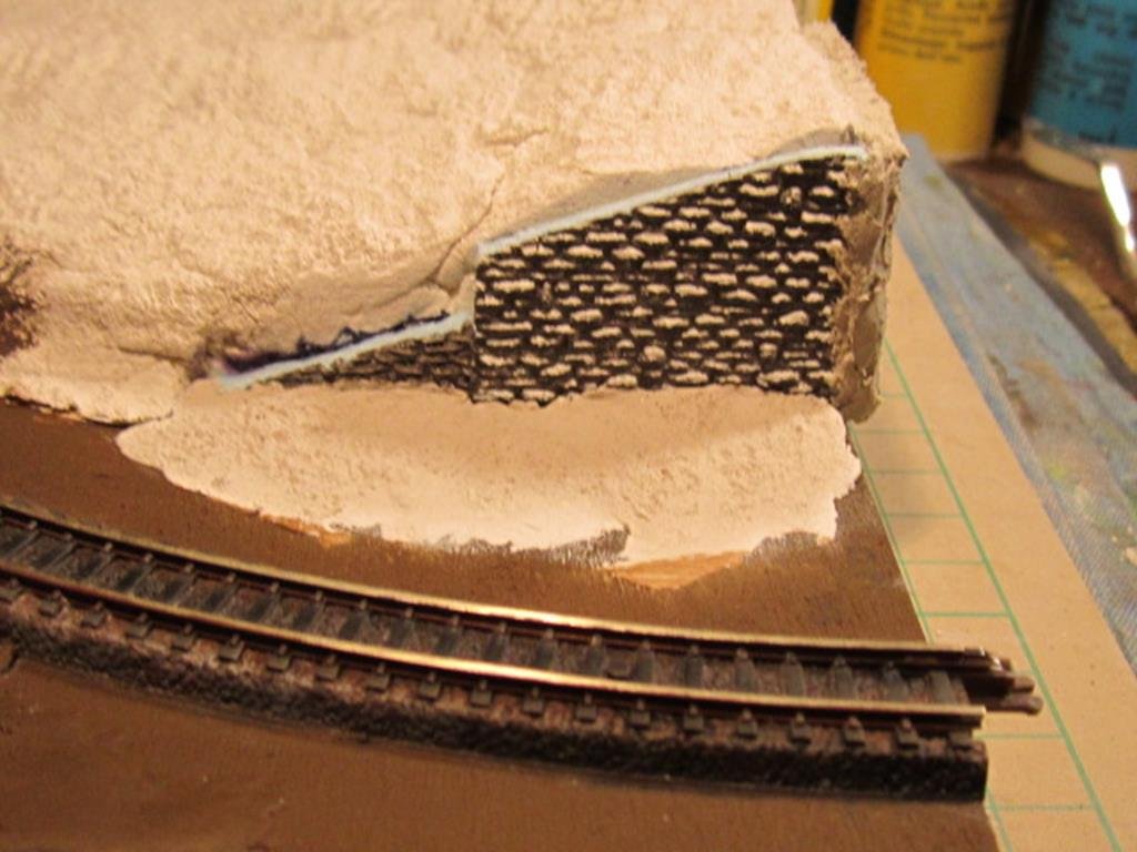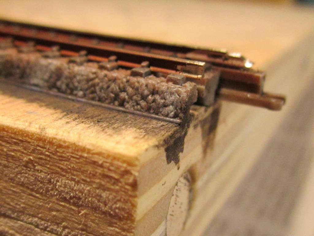 Ma si può fare grazie alle massicciate in plastica dei binari che non si sgretolano come il ballast a contatto della parte adesiva del nastro. Con il ballast occorre che la mascheratura sia oltre il ballast in modo che il nastro adesivo in carta non vi si incolla sopra , un po più faticoso ma non impossibile