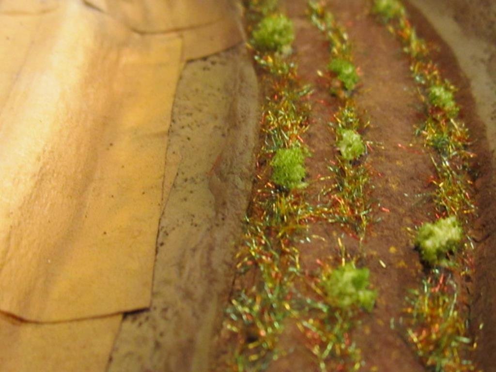 Roby la True-Earth faceva (forse fa ancora...) un preparato per il terreno, molto fine e in varie gradazioni di colore, appunto una specie di crema, il READY EARTH... io l'ho provato (ovvio che ora si è seccato..... sigh) e funziona bene almeno per le scale che uso io (1:100 wargame e N treni) ma è fine e credo vada bene anche per la Z...