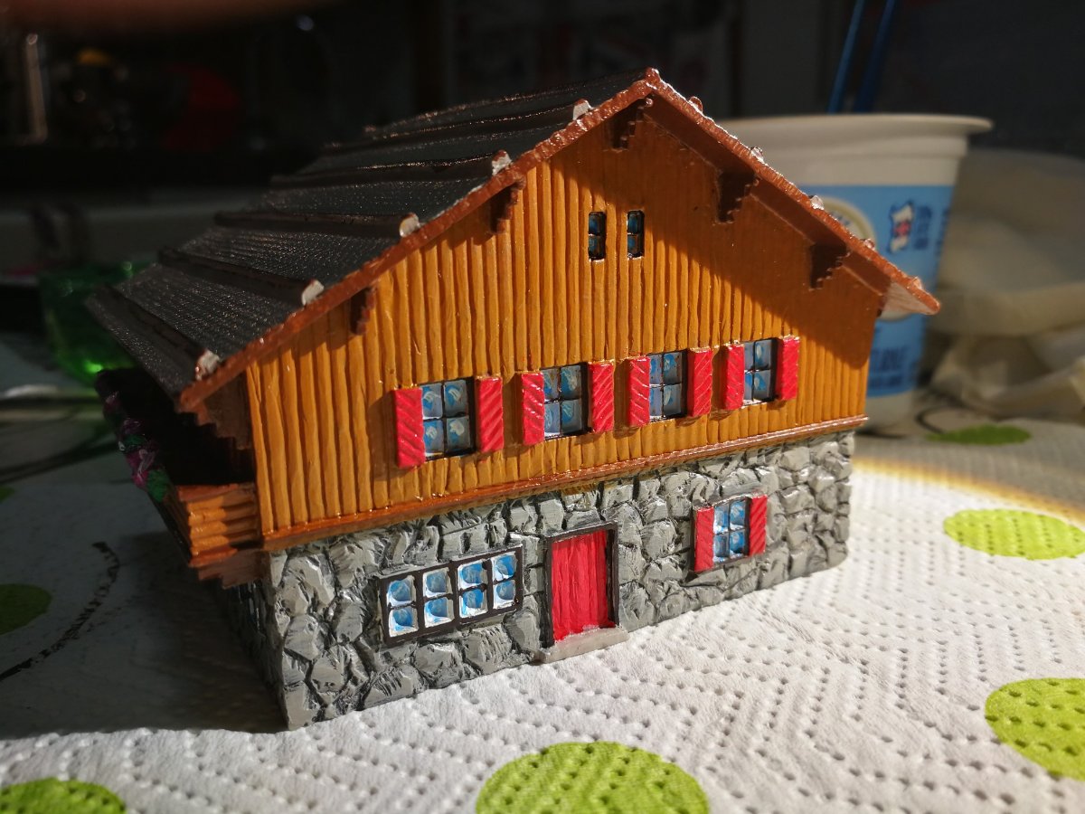 Bravo Francesco lo schalet e venuto bene, anch'io mi ricordo che molte villette in svizzera avevano le imposte molto colorate anche in rosso con tantissimi gerani alle finestre. Mi potresti dire se hai la possibilità da dove hai preso le insegne, a me servirebbero quelle del canto Aarau,magari se mi dai una dritta vedo di andarci io a scaricarmi qualcosa.