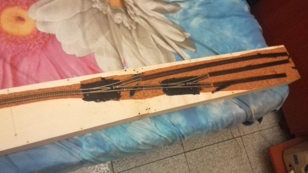 Prossimo step: incollaggio binari e posizionamento dei motori sotto plancia Roco.