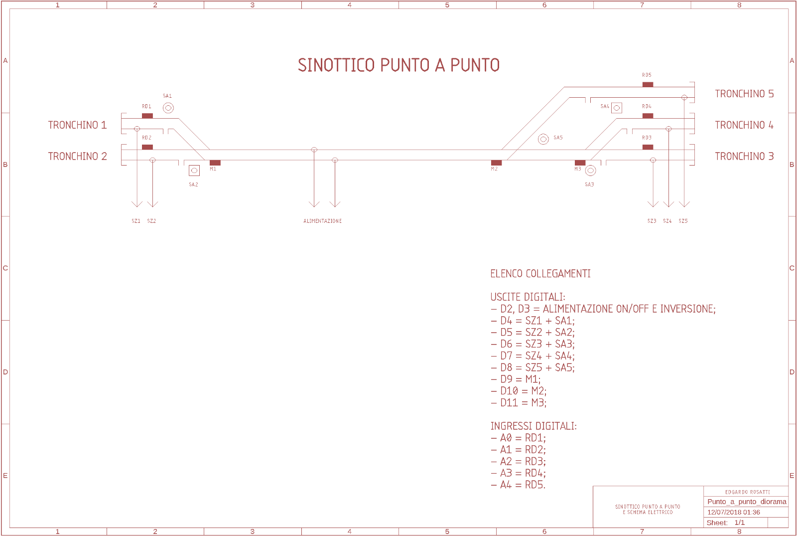 Il funzionamento di una linea punto a punto è arcinoto, tuttavia, vorrei presentare uno schema elettrico di automazione che fa uso di un semplice Arduino UNO. In questo schema si prevede la gestione elettrica di un singolo binario, 2 segnali e 2 sensori di fine corsa.