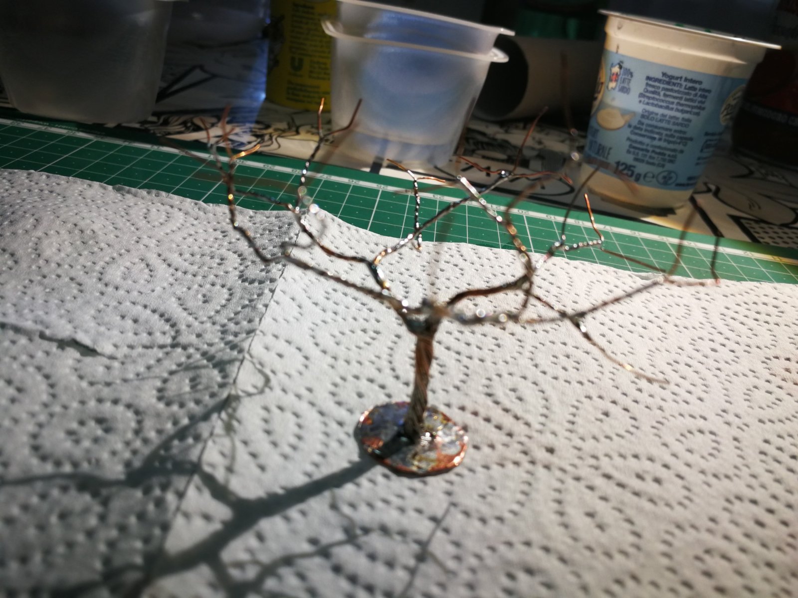 Non so quale tecnica userai, ma le indicazioni di Massy sono ottime, personalmente aumenterei i rami terminali che permetterebbero di appoggiare piccole "nuvole" di dacron, che fanno volume, come da te realizzato è una bella struttura ma un poco spoglio.