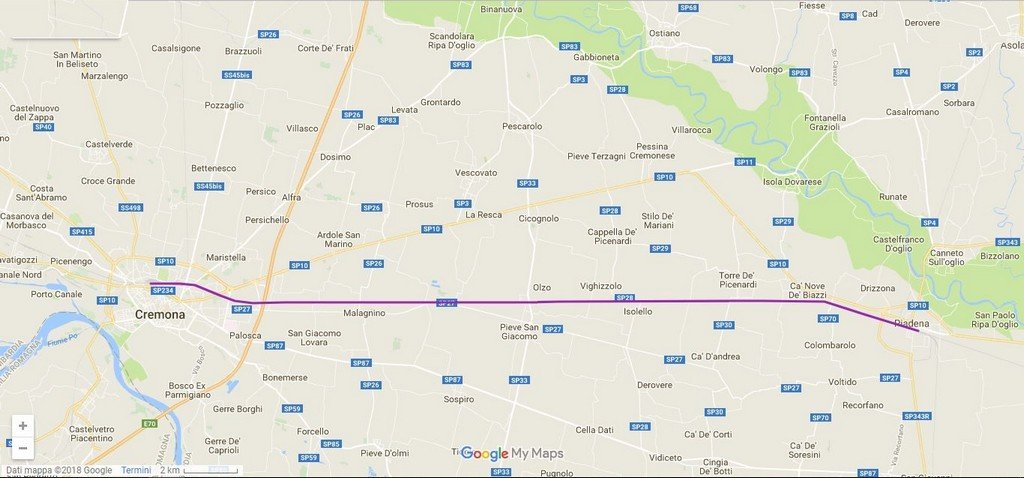 La tratta tra Cremona e Piadena richiede circa 20 minuti di viaggio, quindi giungiamo in orario a Piadena alle 12:35. Il treno ha effettuato fermata a Villetta Malagnino, Gazzo - Pieve San Giacomo e Torre de' Picenardi.