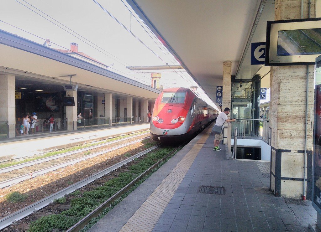 La prima fermata prevista è Milano Centrale, che raggiungiamo in orario alle 8:27. A Milano c'è un buon interscambio di passeggeri e ripartiamo alle 8:41, con 5 minuti di ritardo. Il treno procede la sua corsa verso Venezia, con a bordo una buona quantità di passeggeri. La tratta tra Milano e Brescia richiederebbe circa 35 minuti di viaggio, mentre oggi giungiamo a Brescia alle 9:20, con dieci minuti di ritardo.