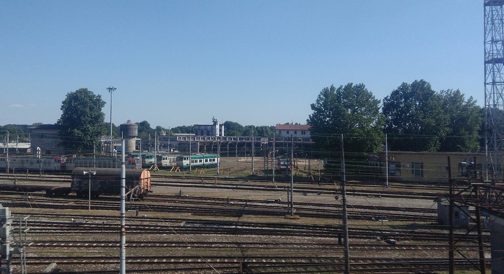 Il treno si porta quindi a Bivio Casirate, dove c'è l'interconnessione con la linea tradizionale e termina l'elettrificazione in corrente alternata. Da qui procediamo sulla linea "Venezia Veloce", che è una ferrovia ad alta velocità di penetrazione urbana, alimentata a 3000V in corrente continua e che ammette velocità massime fino a 220 km/h, ma consente anche la circolazione di treni del servizio regionale e merci. Circa 20 minuti dopo la partenza da Brescia transitiamo nei pressi dello scalo merci di Milano Smistamento, quindi ci immettiamo nel nodo di Milano e raggiungiamo la stazione di Milano Centrale alle 16:47, con due minuti di ritardo.