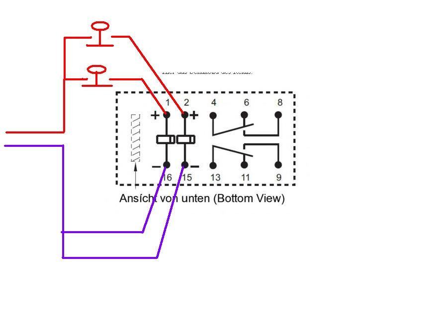 Il mio problema quindi riguarda il fatto che così facendo sui contatti delle bobine di ciascun relè ci sarebbero due collegamenti: ogni polo positivo al comune positivo del decoder (ad esempio) Esu switchpilot e al positivo del sinottico. Ogni polo negativo a una delle due uscite dell'Esu e ai contatti negativi dei pulsanti NA del sinottico.