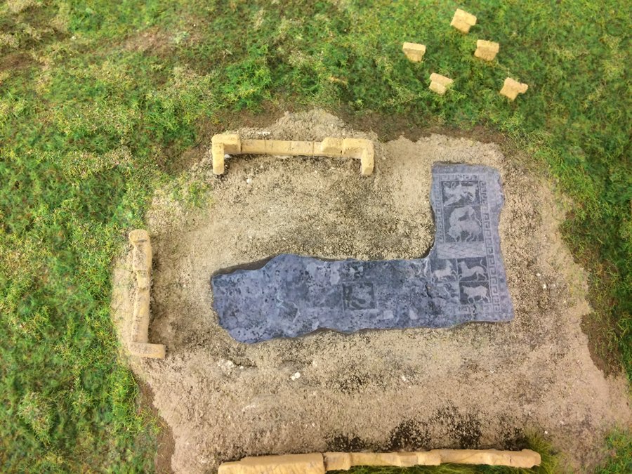 Oggi ritrovamento archeologico : casa romana e pavimento con mosaici.