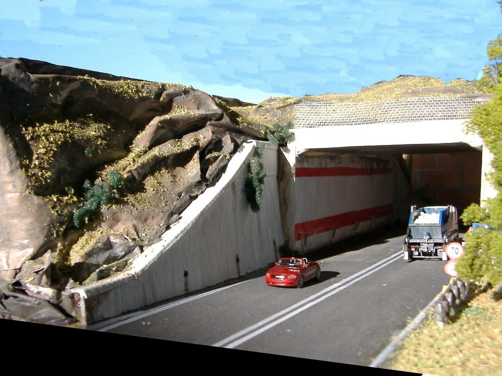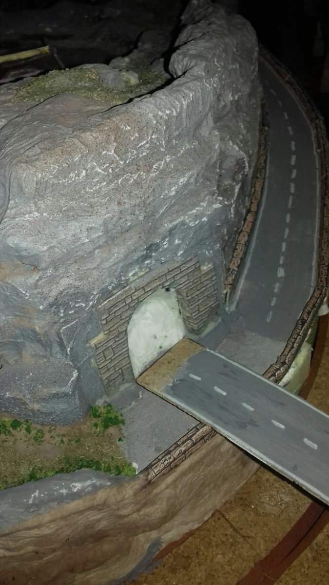 In effetti manca un accesso sensato alla viabilità del plastico , risolvibile con una galleria stradale. Unico neo che i portali per le gallerie stradali sono molto differenti da quelle ferroviarie, una soluzione creare quelle rettangolari con paravalanghe