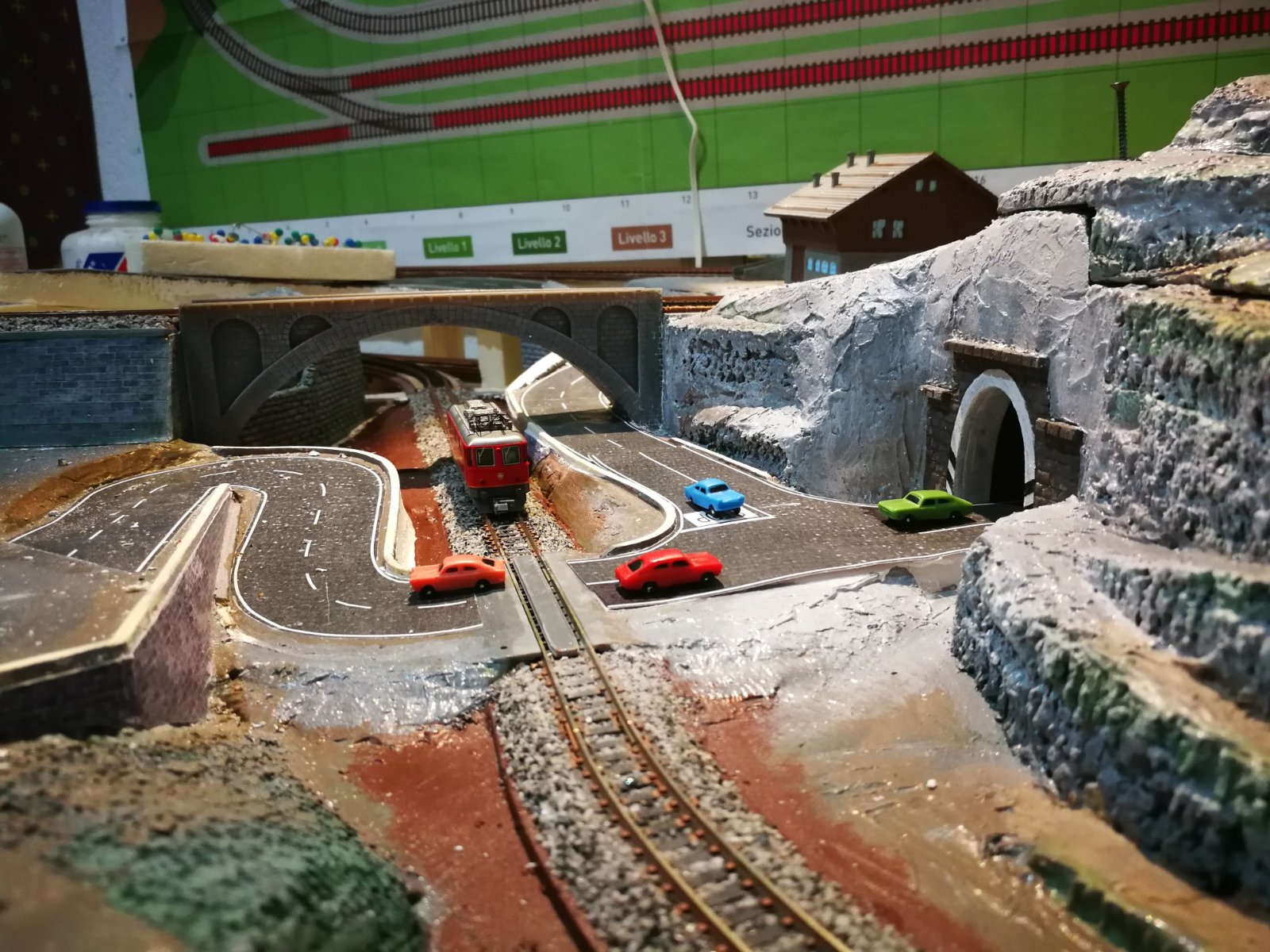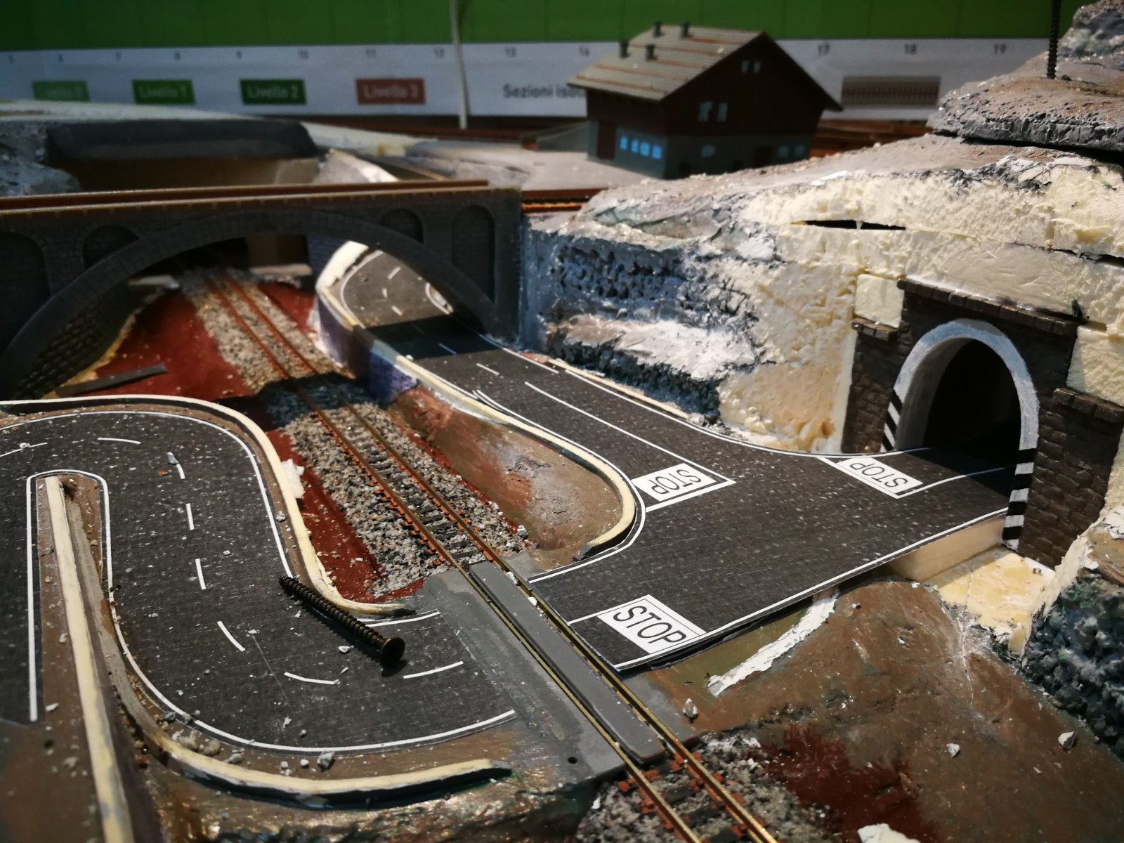 Niente male Francesco, l'idea mi piace, mi piace meno lo stop a ridosso del portale ma capisco che lo spazio è quello che è, per quello a ridosso del PL lo sposterei più avanti, vedo che hai un po' di spazio c'è, l'alternativa, visto lo spazio, potrebbe essere un semaforo, per il portale un avviso luminoso potrebbe essere realistico e a quel punto uno si potrebbe pensare di posizionarlo prima del PL simulando una comunicazione con la ferrovia e che con il PL chiuso si blocchi la circolazione(tutti Rossi), non so se però è reale come situazione, una volta con il PL aperto riprende il semaforo il suo normale svolgimento.