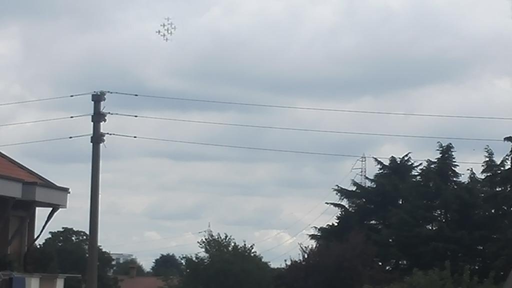poco prima della partenza del GP, durante l'esecuzione dell'inno d'Italia, sono passate le Freccie Tricolori sopra i cieli brianzoli.