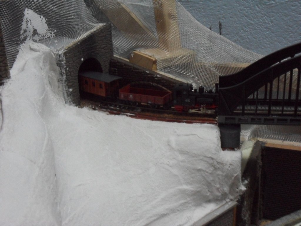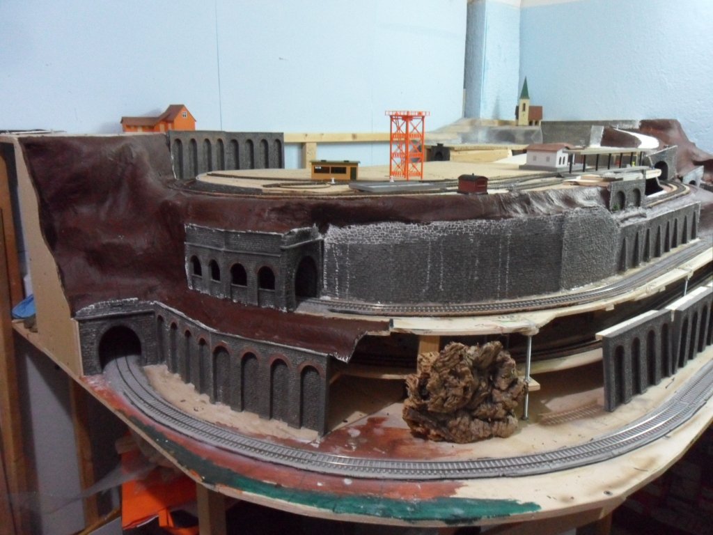 Il proseguo della montagna, la base di fondo sui rilievi e la colorazione dei binari e le rotaie .