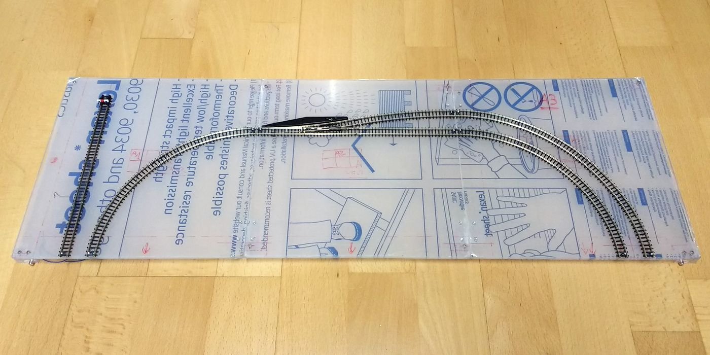 Allestita la terza piastrella. Qui c'è un binario morto con uno sganciavagoni: