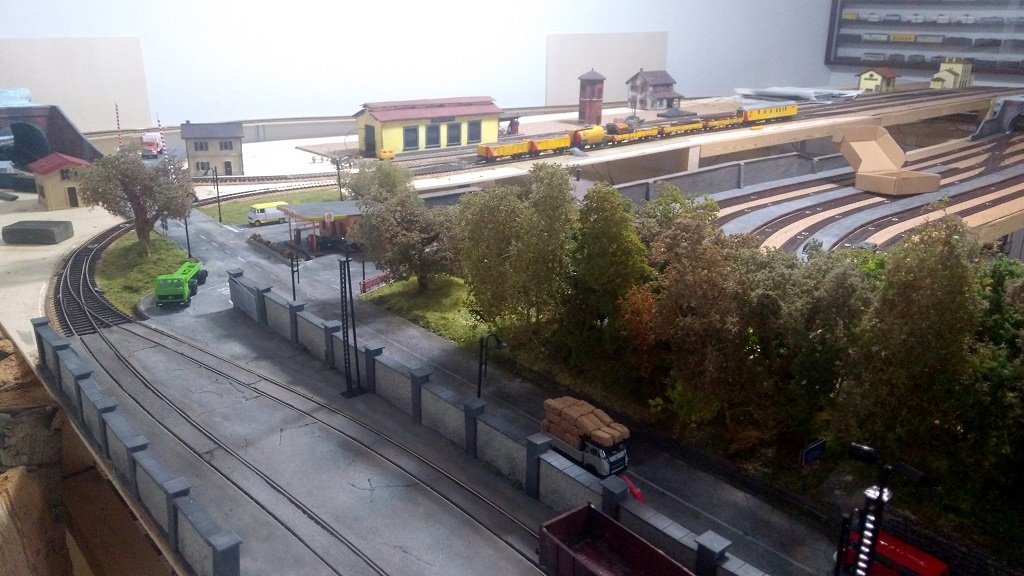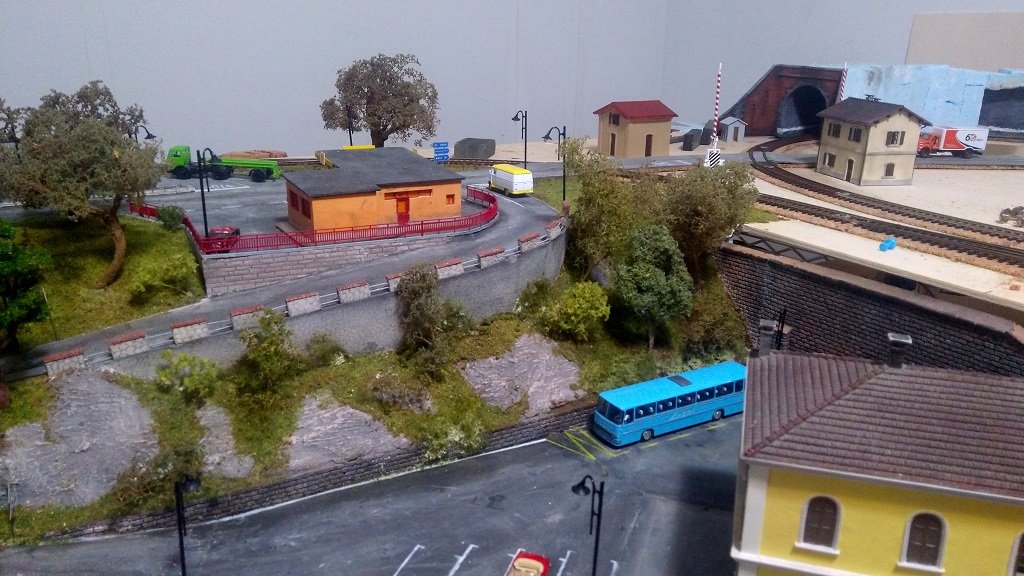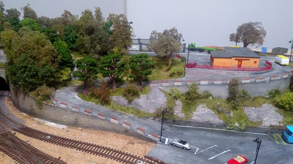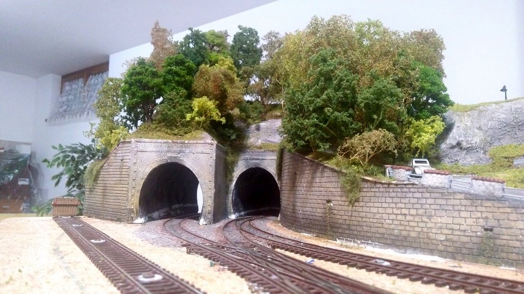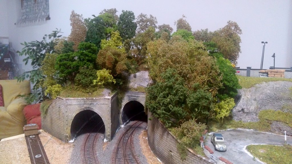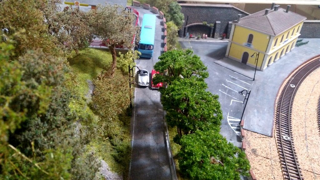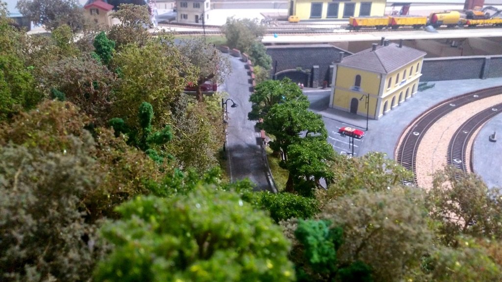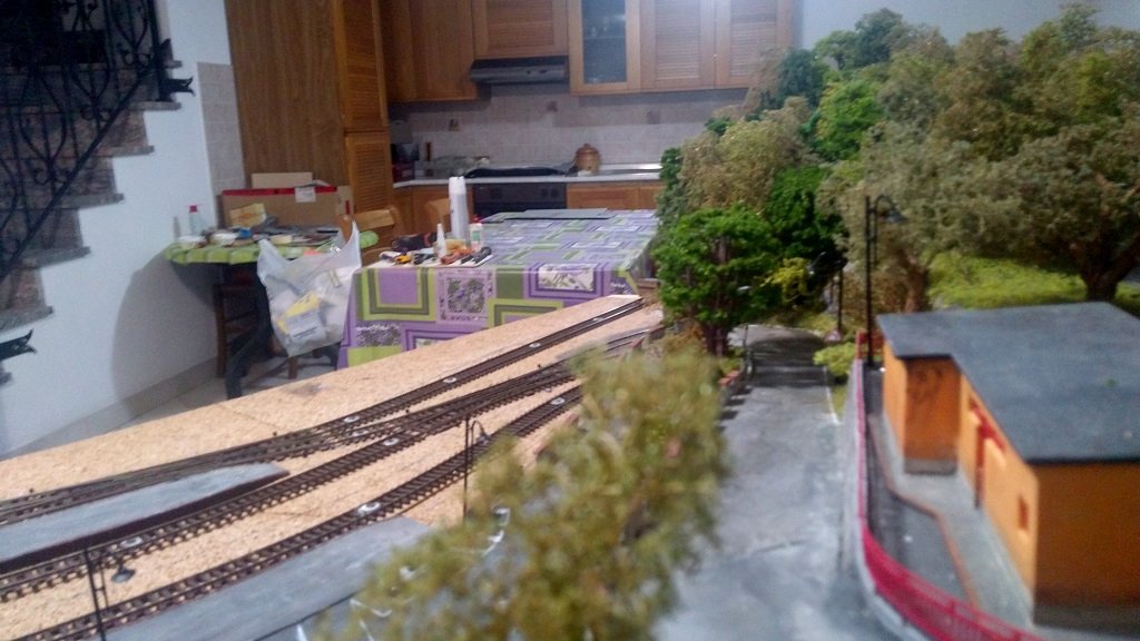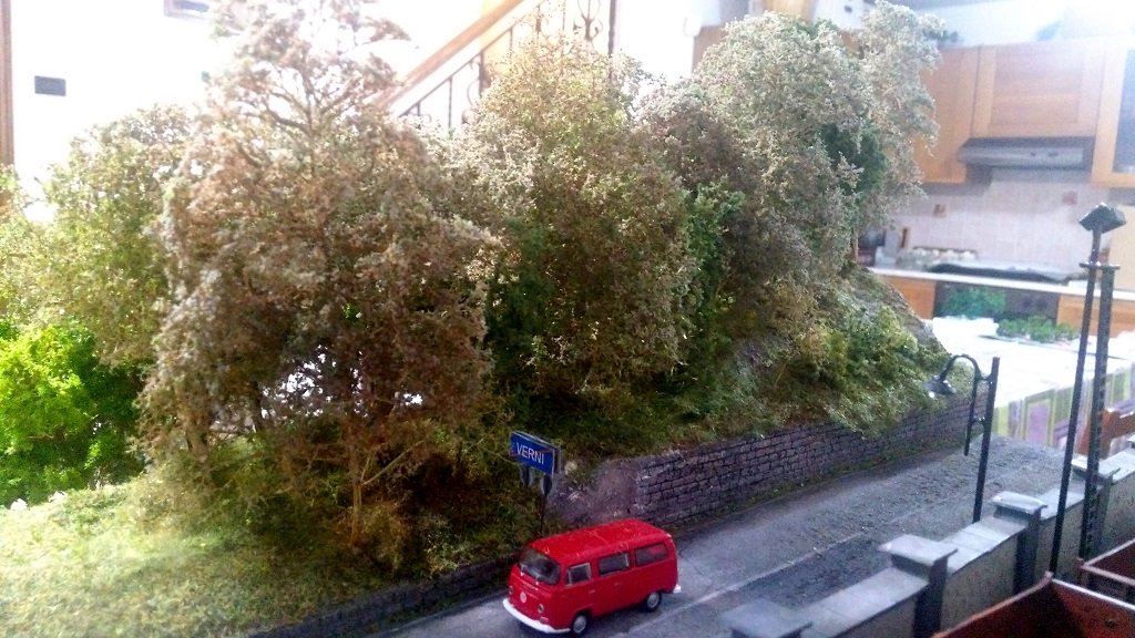 Diego i tuoi sono sempre ottimi consigli, infatti sto cercando proprio di seguire quelle regole da te descritte per le piante(in questo caso mi aiuto con le piantine di teloxis e qualcosa di aiuto costruito) inoltre sto cercando di mettere in partica i consigli che mi avevi dato precedentemente per il sottobosco, sotto le piante più grandi ho dato con il pennello a secco passate di ocra e marrone per dare l'idea dell'erba secca o comunque non verdissima, poi come sempre dacron per dare volume, qualche piccolo cespuglio qua e la e un po di incolto che tende a scendere sui muretti, piano piano piantumo e migliore le zone, ieri sono andato un po' avanti