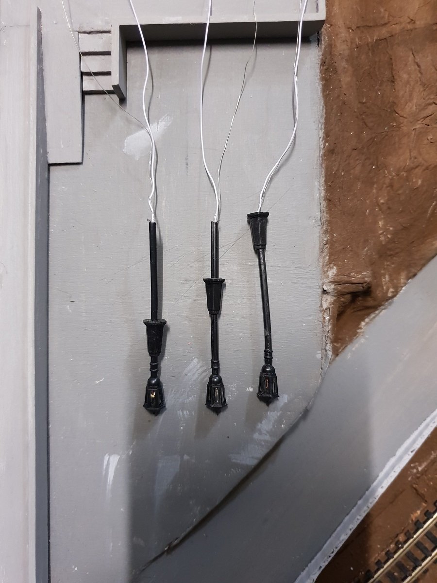 I lampioncini sono ancora alti, verranno abbassati e raddrizzati (anche loro...) solo dopo il completamento della posa binari.