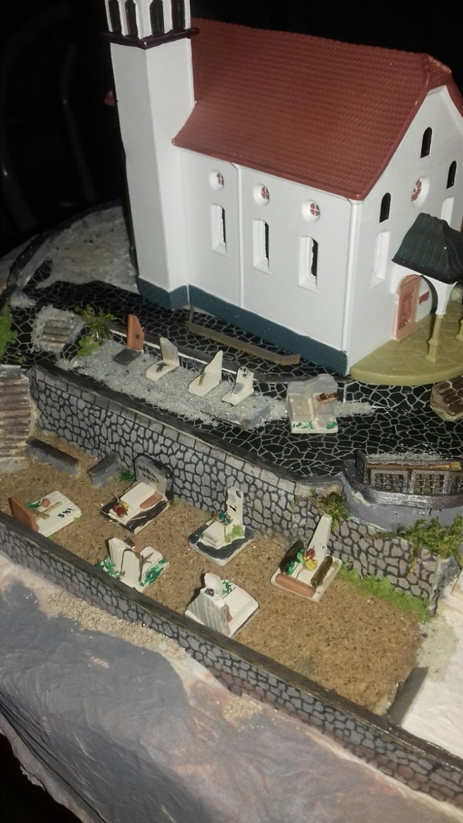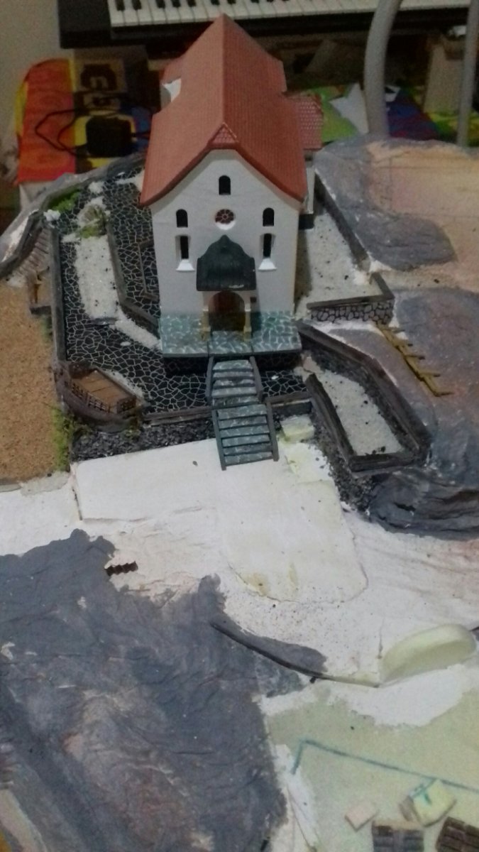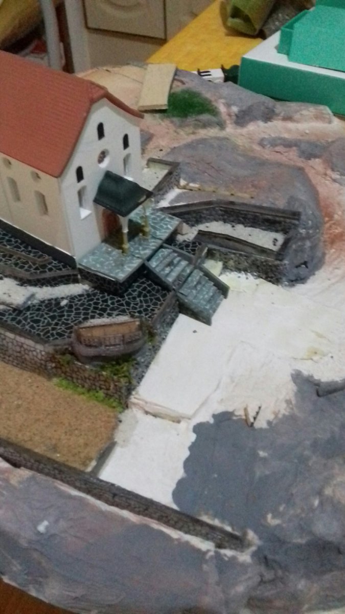 Te l'ho detto in privato e te lo ripeto sul forum, a me piace l'idea alternativa dell'utilizzo del foglio DeA, mi piace particolarmente il contrasto con il muro di contenimento, con una "sporcatura" della chiesa renderai il tutto meno giocattoloso e più reale.
