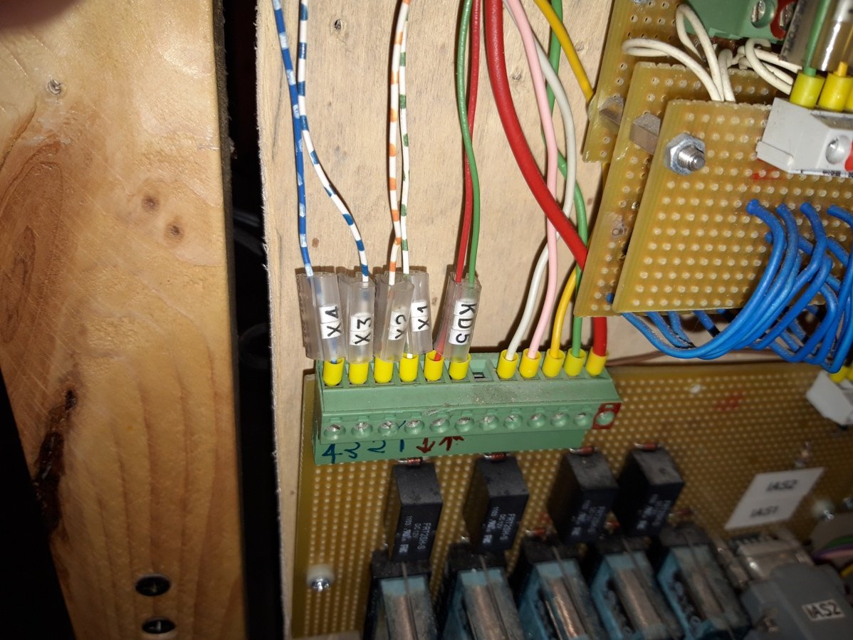 Esempio, nella successiva foto: X1, X2; X3; X4: sono i Reed di verifica presenza convoglio, mentre "KD5" è il filo di comando del Reed di arrivo, ma stavolta comprendendo il "doppio arrivo", da due diversi binari.