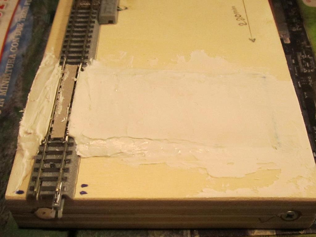 oggi mi sono dedicato a preparare il sedime stradale del passaggio a livello, non ho voluto utilizzare quello Rohuhan perchè prendeva troppo spazio sul modulo. Inoltre serve solo la parte interna è un abbozzo per la parte esterna sacrificare un pezzo costoso non mi andava è ho preferito la via della auto costruzione. Ho utilizzato alcuni scarti di balsa per creare la rampa di accesso ai binari e il piccolo simulacro di strada sul lato esterno, entrambi sono stati carteggiati fino ad arrivare alla massicciata, mentre per la parte centrale delle rotaie ho preferito utilizzare del cartoncino tagliato a misura. Per raccordare la rampa con le rotaie ho stuccato con il normale stucco vinilico per edilizia che una volta indurito sarà levigato oltre a ripulire le gole di scorrimento dei bordini.