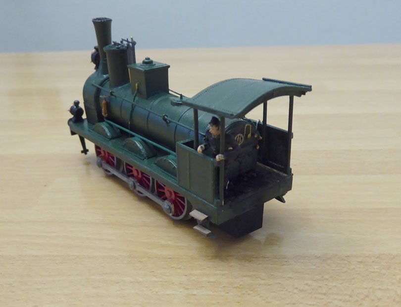 Ecco come si presenta attualmente il modello, non è ancora stato assemblato completamente , il tetto e la caldaia sono infatti solamente posati , le foto sono solo come dimostrativo, mancano ancora tantissimi particolari ; la distribuzione è a sistema Stephenson a cilindri interni .