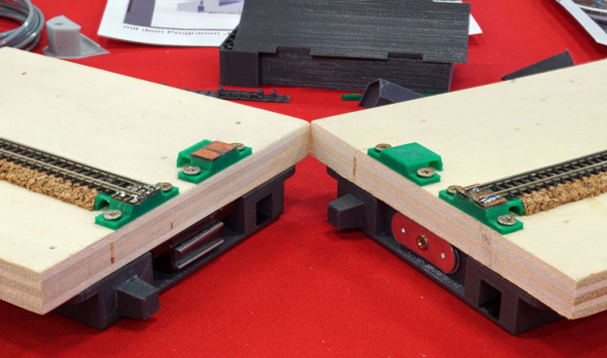 Concettualmente, l'accoppiamento è come quello tra le massicciate dei binari Rokuhan, ma col bloccaggio magnetico.