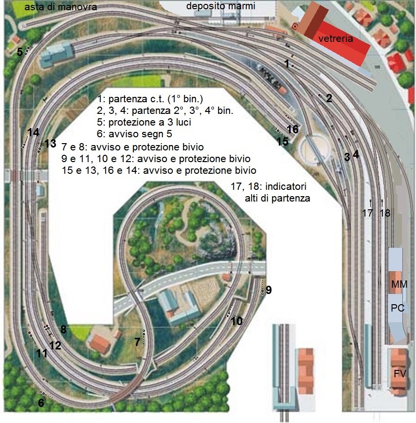 Il tracciato non altro che un osso di cane rigirato su se stesso con due grandi stazioni nascoste con la possibilità di ospitare circa 15 convogli, un tratto a binario singolo collegato, che porta alla stazione terminale di Civita di Borgonaccio terme, stazione a cui fa capo la Freelance, naturalmente anche le FS effettuano servizio sul plastico. L'ambientazione in senso temporale spazia molto, ovvero dagli inizi del 1907 fino ad arrivare a circa vent'anni fa, non tenendo in considerazione il periodo attuale. L'impianto sarà interamente digitale per evitare km di fili per i sezionamenti.