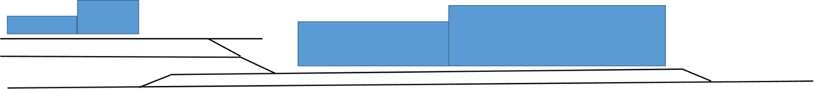 1)hai un tronchino di manovra sul piccolo deposito molto lungo,li al massimo puoi manovrare una loco o loco +carro,mentre hai un tronchino corto sullo scalo merci io invertirei le dimensioni.