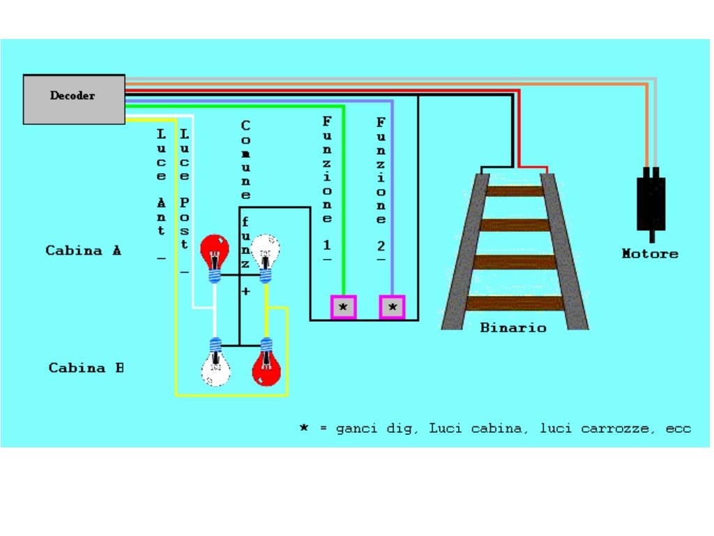 Questo tipo di connessione sfrutta come polo positivo il filo nero (presa corrente dalla rotaia sinistra).