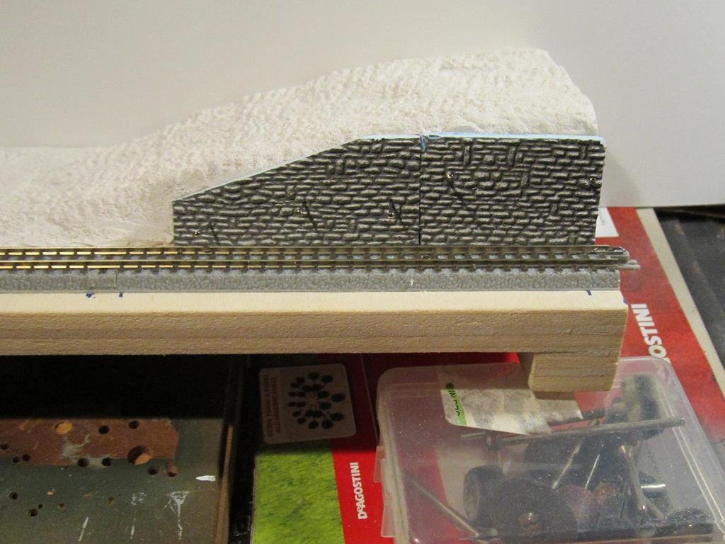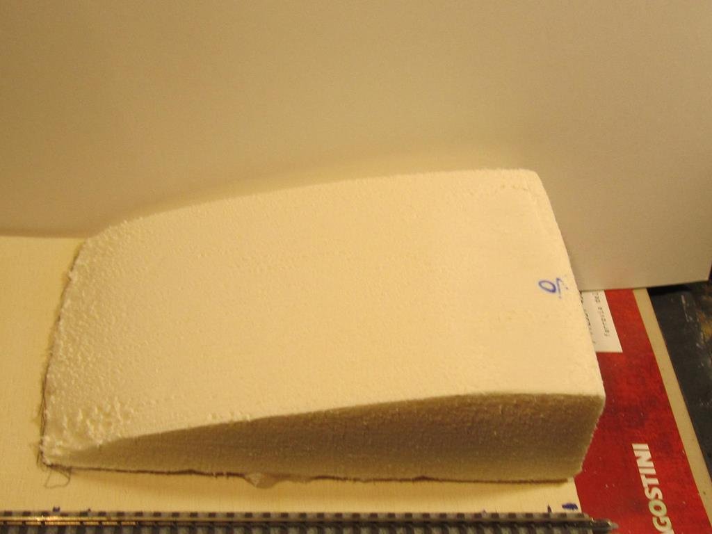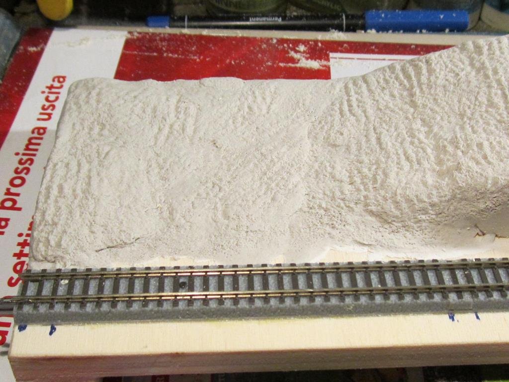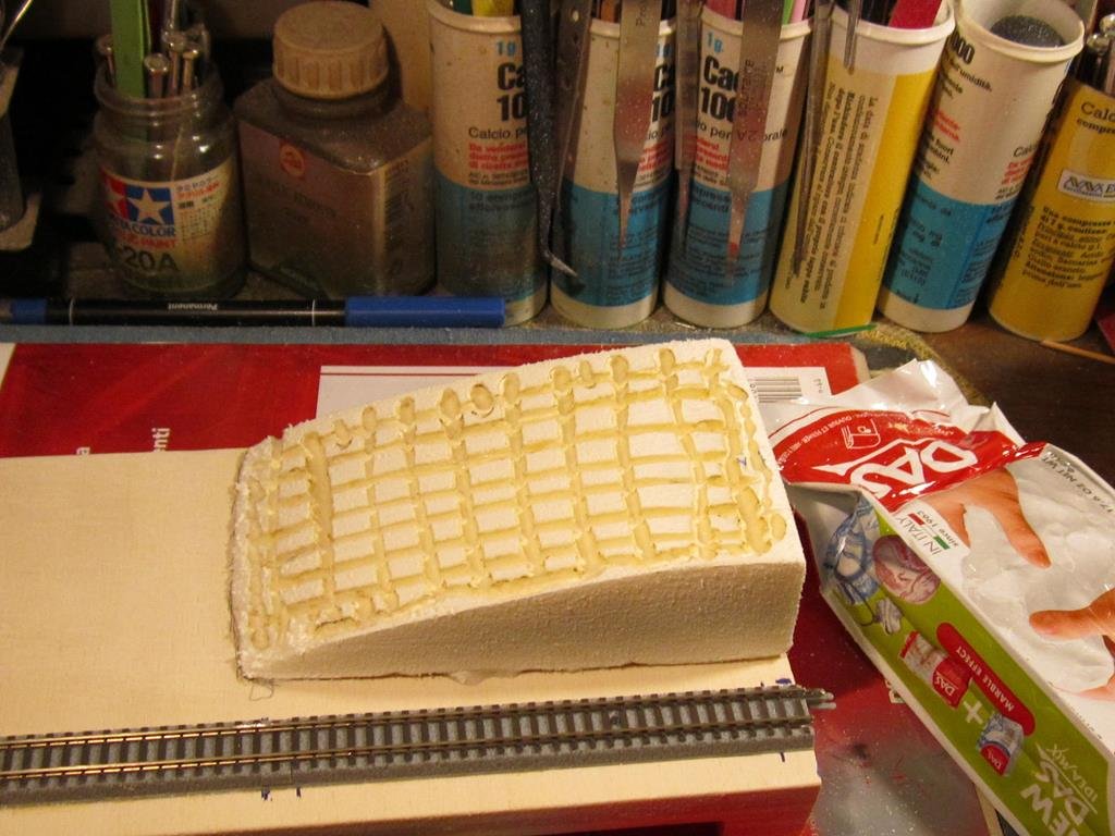 La pasta è stata stesa anche oltre ai bordi per aumentarne l'adesione al blocco di polistirolo estruso, una volta ben secca verrà carteggiata per portarla a filo.