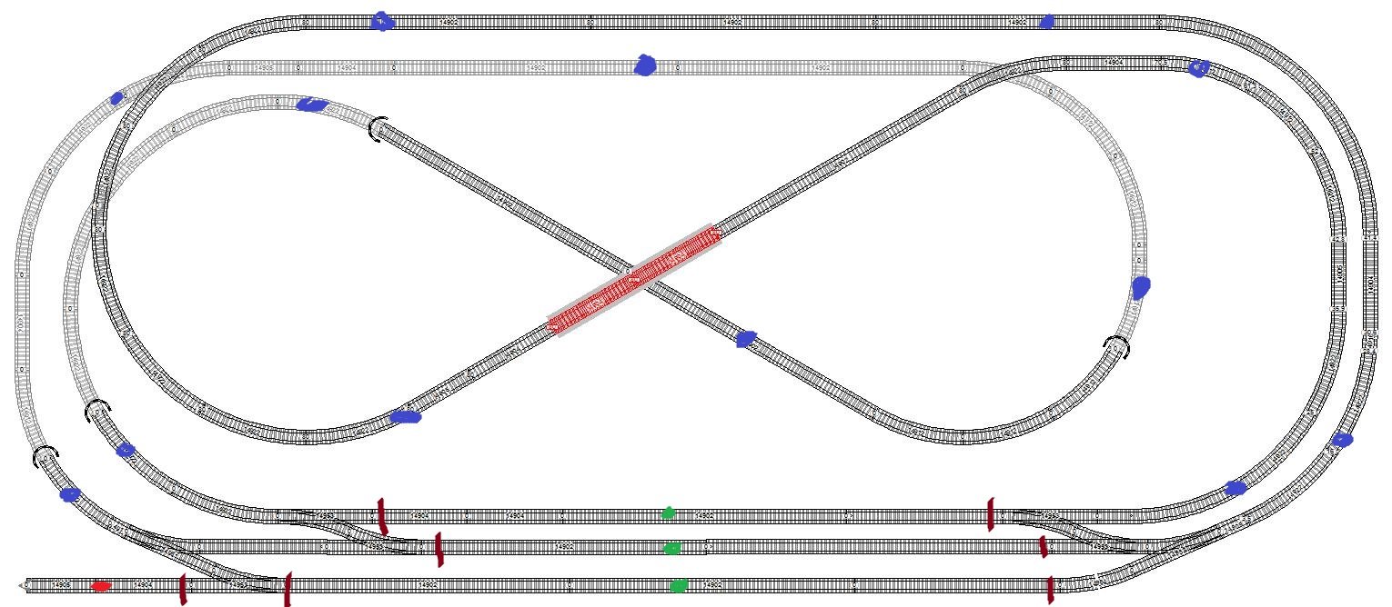 questo tracciato purtroppo ha il problema che inserendo i deviatoi in più di quelli preventivati crea un cappio ovvero un cortocircuito eviterei di utilizzarlo come riferimento per un ulteriore sviluppo.