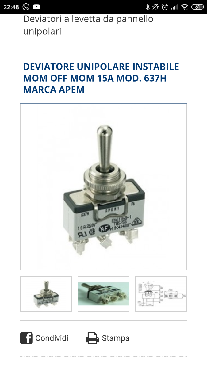 1) l'interruttore sia ad "impulso". Quelli che abbiamo visto sopra a levetta sono applicabili?