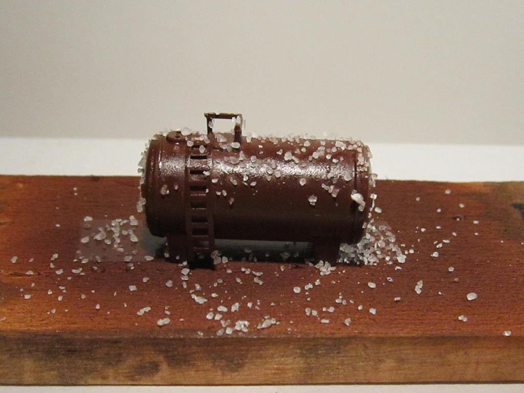 Dopo aver fatto il più grosso per l'invecchiamento del capannone sono passato a una cisterna per uso vario ( oli, lubrificanti o carburante ), questa volta per l'invecchiamento ho voluto utilizzare la tecnica del sale.