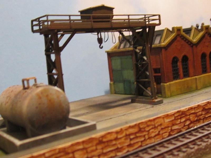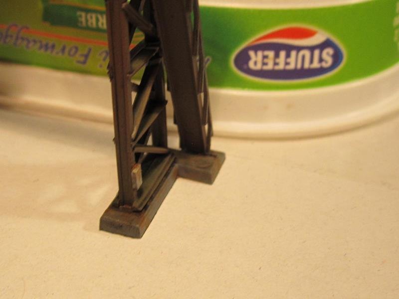 Intanto sulla gru a portale ho terminato di dare i colori di base anche sui dettagli cavo coassiale, gancio della gru e relativi cavi, cassetta comandi,blocchi di cemento, tetto cassa argano, scala.Toccherà poi fare qualche invecchiamento selettivo