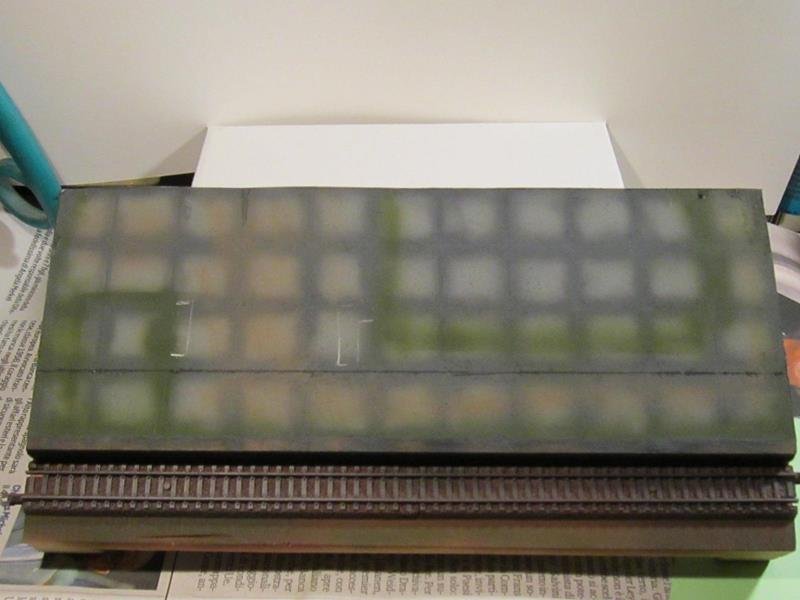 Una volta tracciate le linee guida per i riquadri la parte centrale è stata schiarita con un grigio chiaro tendente al marroncino. il passo successivo è rimarcare le linee con del nero sempre ad aerografo per poi uniformare il tutto con una passata generale di grigio chiaro.