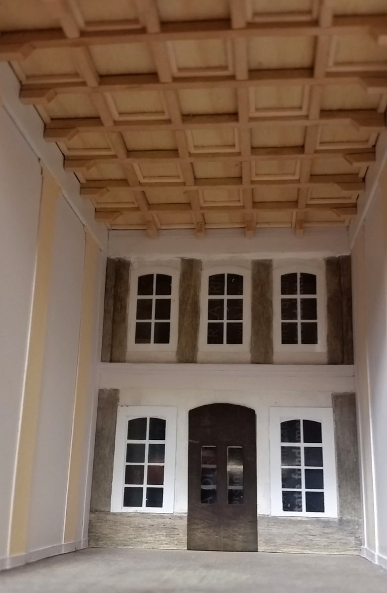Grazie a Roberto per il link, molto interessante... purtroppo ho constatato che le dimensioni dei lampadari sono troppo fuori scala, quindi ho ripreso l'idea iniziale arrivando al "monumentale" lampadario che vedete in foto. Il gusto dell'epoca mi è stato d'aiuto in quanto all'epoca non mancavano realizzazioni per così dire "massicce"... due micro led a luce calda posizionati sul soffitto dovrebbero riprodurre il fascio di luce che avrebbe potuto generare un lampadario di questo tipo...