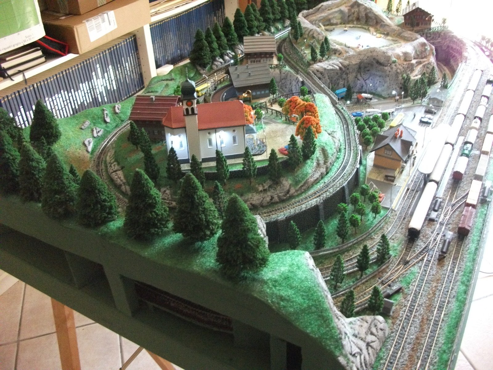 Qui io gli suggerirei di mascherare il troppo ballast con una striscia d'erba che separi i due binari, o terriccio, a lui la scelta.