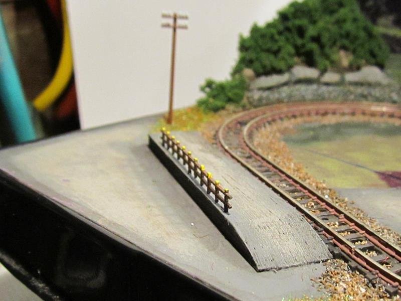 Posizionato un palo per i cavi elettrici ( in Giappone le linee elettriche non sono interrate anche nelle grandi città vedrete varie linee aeree della corrente elettrica ) è la staccionata sulla banchina della fermata.