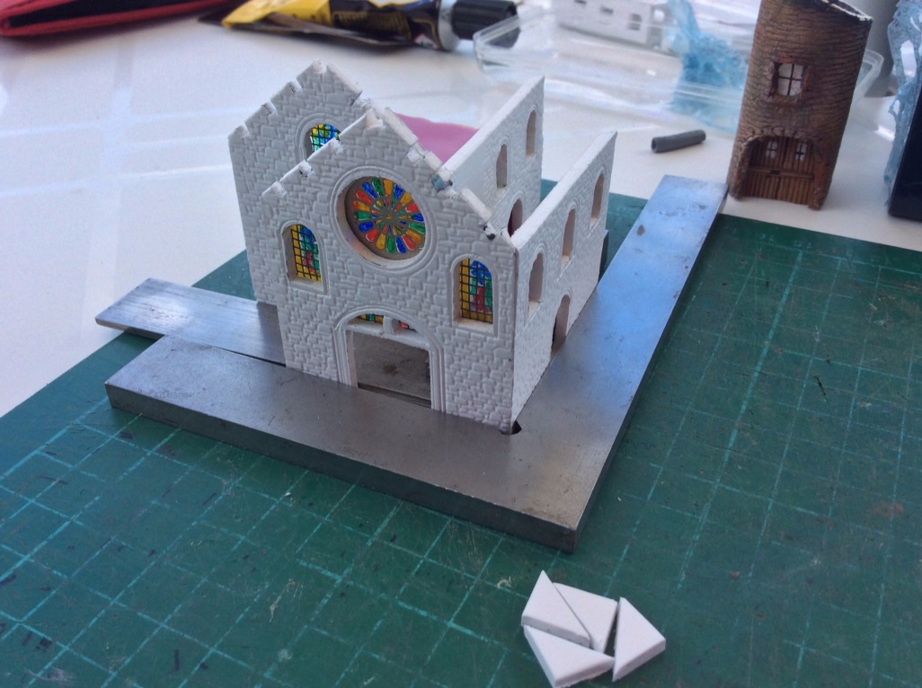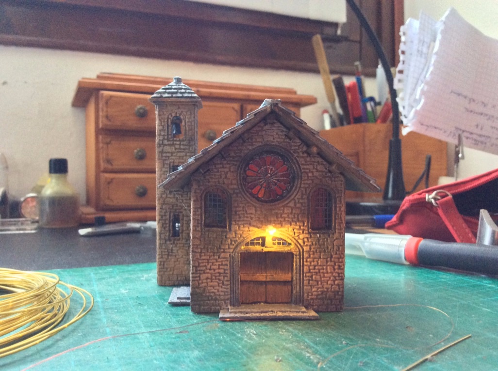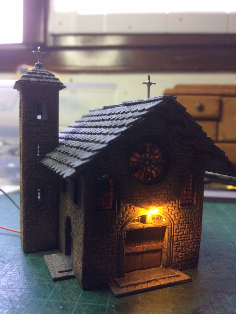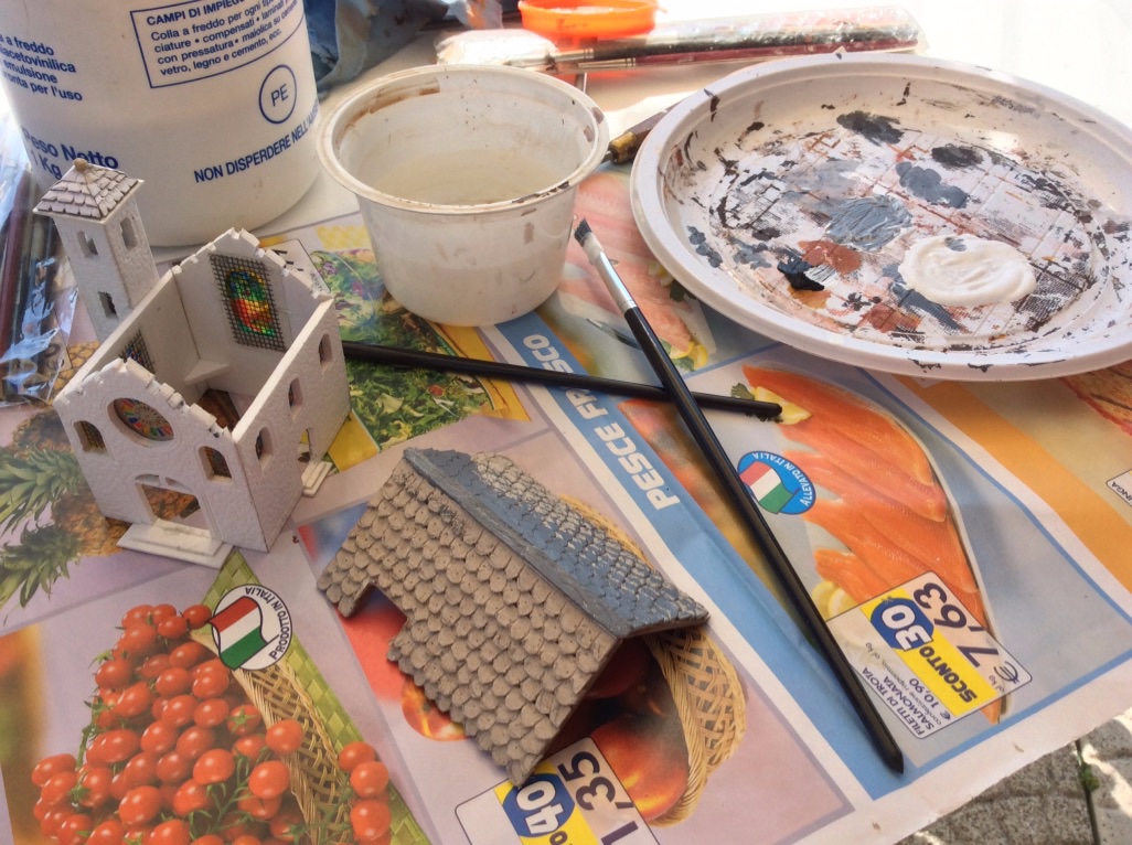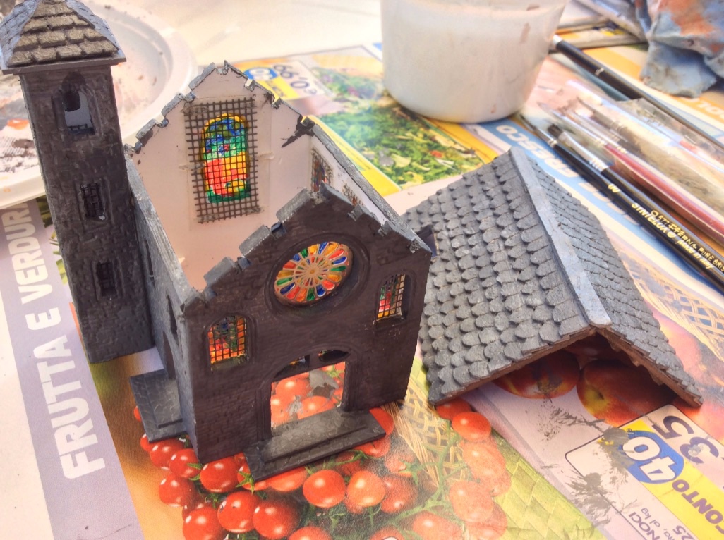 Poi con dei pennarelli da foils ho simulato le vetrate figurative tipiche delle chiese .