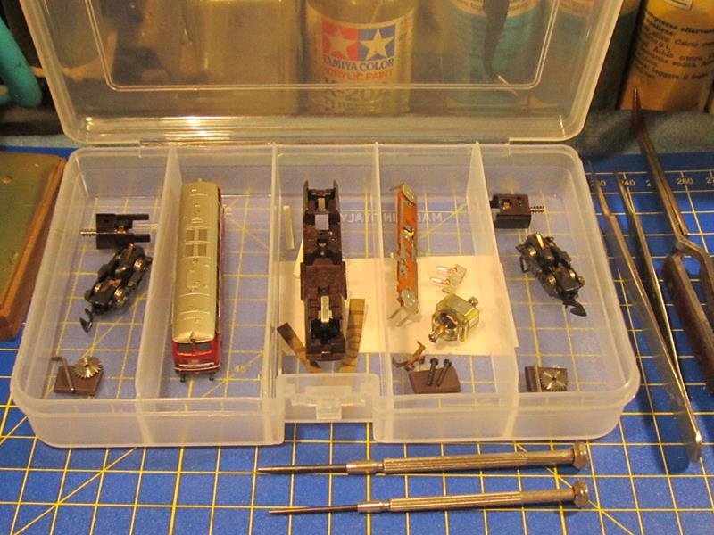 Il primo passo è procurarsi un contenitore richiudibile a scomparti per minuteria in modo da non perdere i vari pezzi della loco una volta smontati.
