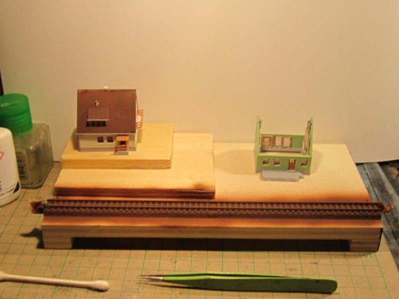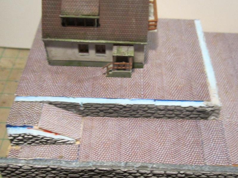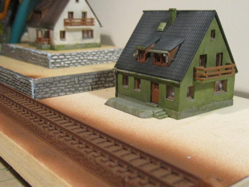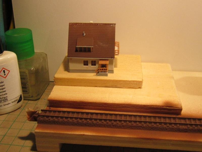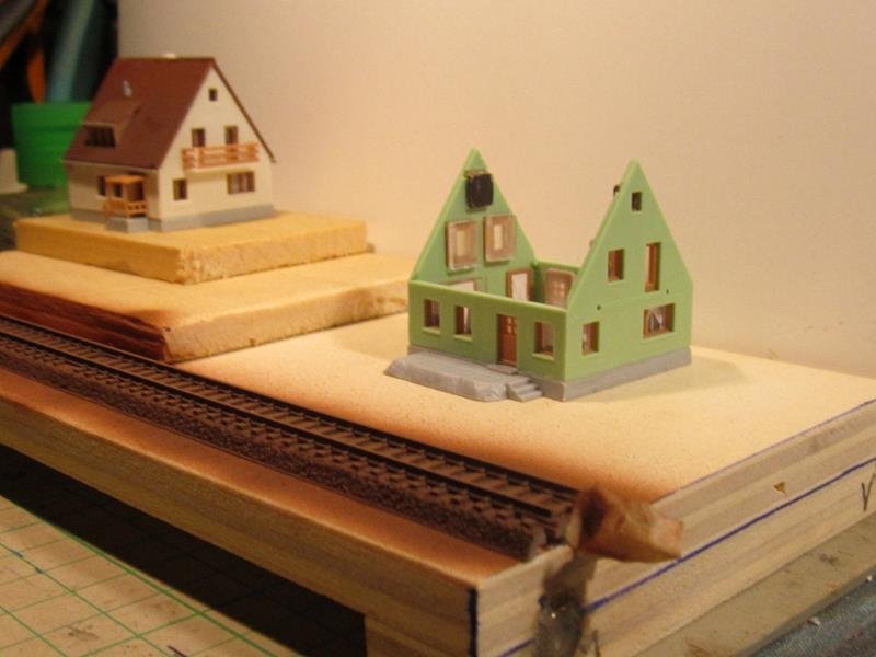 Purtroppo la Kibri anche se ha un costo minore confronto alle omologhe villette Faller e Vollmer ha sempre qualche piccola imperfezione nulla di che , con un po di carta vetro è limette si aggiusta. Per variare la monotonia di un modulo piatto ho creato un piccolo rilievo su un lato, che sarà comodo da accostare ai moduli per le curve leggermente più alti.