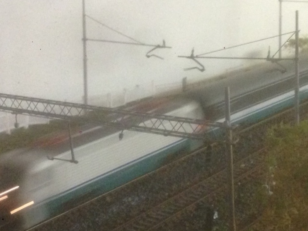 La traversina della catenaria a 5 binari linea model e' gia stata montata e posizionata.