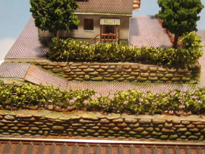 bene, dopo aver passato il film ad olio per uniformare le varie sfumature di colore sui muretti ho provveduto a creare la striscia di terreno dove ospiterà la siepe e qualche alberello ornamentale.