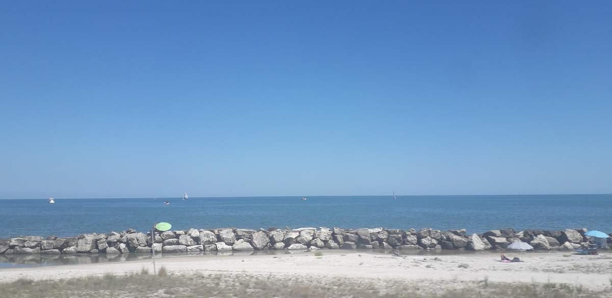 Ripartiamo da Ancona alle 13:36 ed è ora prevista la più lunga tratta senza fermate intermedie. Percorreremo la tratta tra Ancona e Pescara senza fermate ed in un tempo previsto di un ora e 10 minuti. La ferrovia scorre prevalentemente a ridosso della costa, dal treno si possono vedere le numerose spiagge poste lungo il litorale adriatico, mentre i centri abitati si susseguono questi senza soluzione di continuità, specie nella tratta tra Rimini ad Ancona, mentre a valle di Civitanova Marche l'antropizzazione è meno impattante. Gli stabilimenti balneari sono numerosi e tutti ben attrezzati, lasciando comunque il posto anche a spiagge libere ad aree scogliere liberamente accessibili.