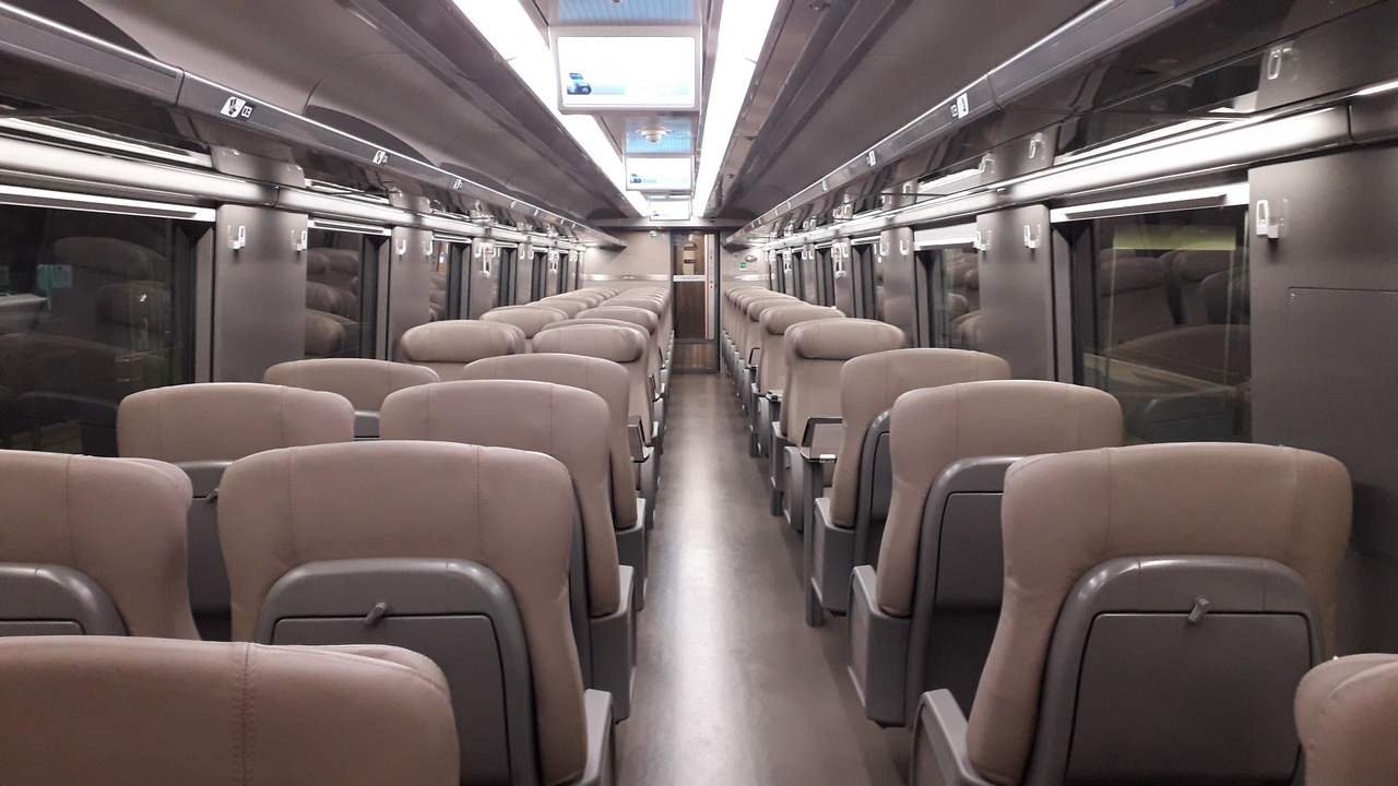 Salgo a bordo del treno e prendo posto nella vettura 2, dove ho il posto assegnato. Il treno prevede il servizio di prima e seconda classe ed è possibile scegliere il posto, sia in prima che in seconda classe, senza sovrapprezzo. Il treno si presenta in ordine e pulito, i sedili sono comodi e lo spazio tra gli stessi è molto ampio, il che garantisce elevati livelli di confort. Sono disponibili prese elettriche a tutti i posti, annunci audio su itinerario del treno e fermate, ma non monitor informativi e connessione wifi. Il climatizzatore è rumoroso e non mantiene a bordo una temperatura costante, abbassando eccessivamente la temperatura quando il treno è meno frequentato o attraversa zone più fresche.