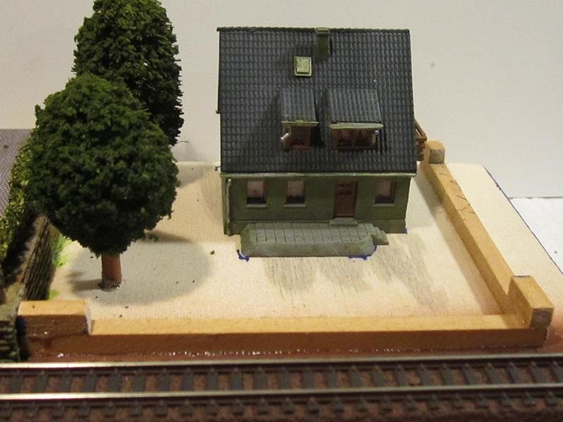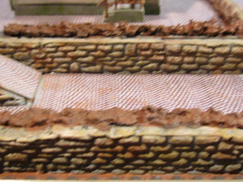bene, dopo aver passato il film ad olio per uniformare le varie sfumature di colore sui muretti ho provveduto a creare la striscia di terreno dove ospiterà la siepe e qualche alberello ornamentale.