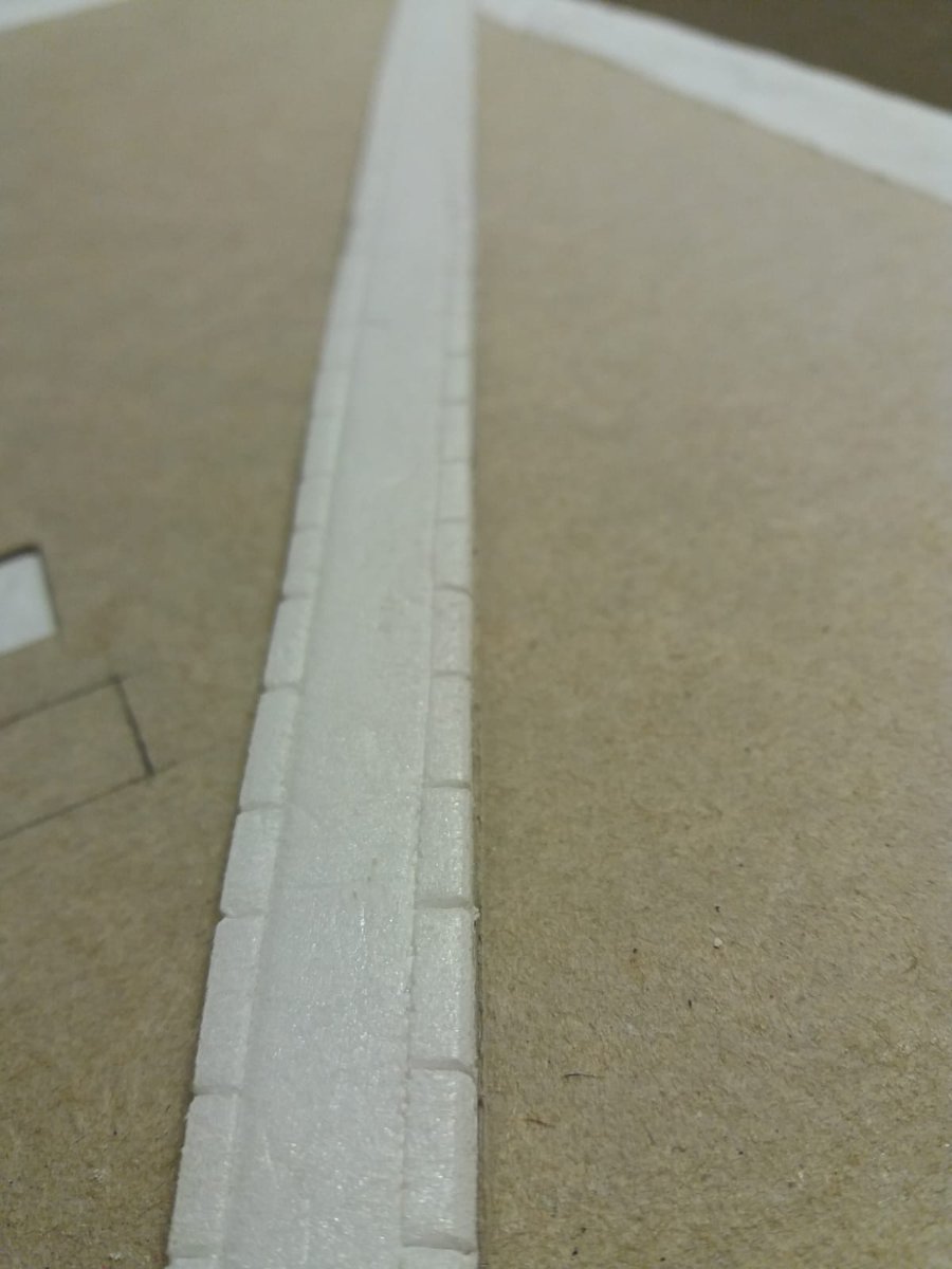 Mmmm allora non credo di poter usare lo stesso metodo, io ho usato del depron da 3mm, quindi non fa che lo gratto, passerò una passata di grigio uniforme e poi un nero diluito e vedo cosa viene fuori