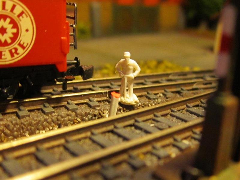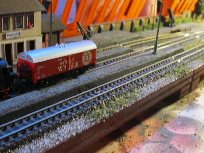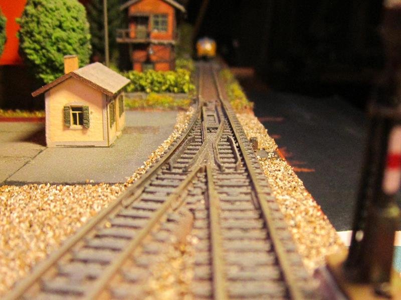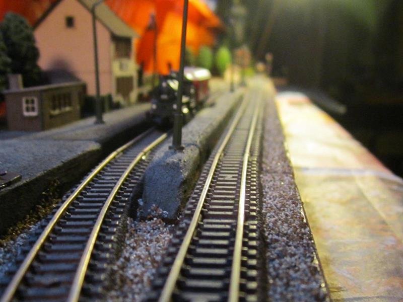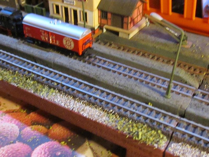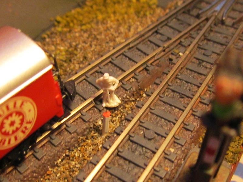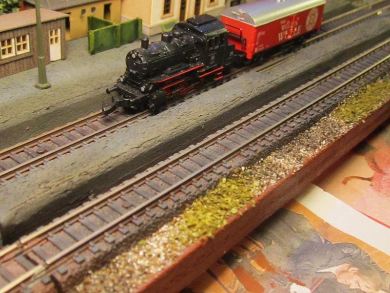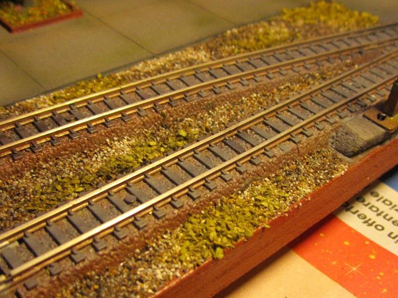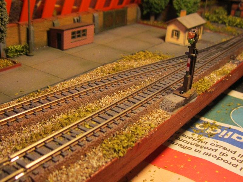 Messa un po di erba sulla massicciata del piazzale binari. Anche lei avrà bisogno di un ritocco colore per spegnere il verde intenso