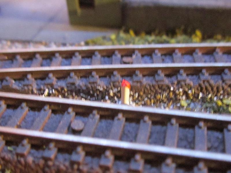 Passato il filtro ocra ad olio sul erba per dargli un idea di erbaccia, passato una tonalità scura di filtro attorno alle rotaie insistendo attorno ai deviatoi.